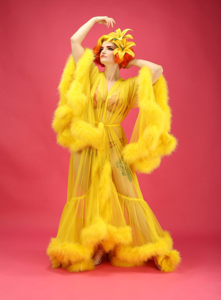 Jayne Elise Sinclair is a lifelong lover of classic burlesque who is finally stepping into the spotlight. Raised by a local burlesque dancer, she grew up backstage, surrounded by feathers, glamour, and the art of tease. Though new to performing, Jayne has spent over a decade studying and admiring burlesque, with a deep respect for the craft and its legacy. She brings old-soul elegance, heart, and heritage to the stage as she begins her own journey in the world of burlesque.